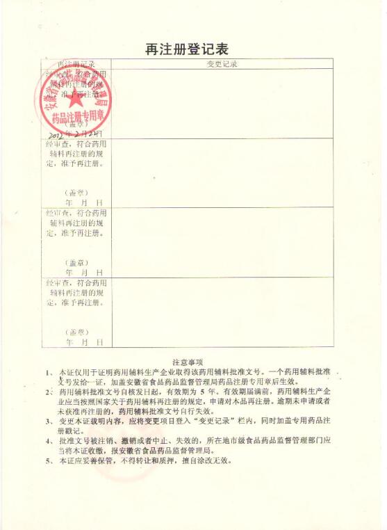 药用辅料注册证